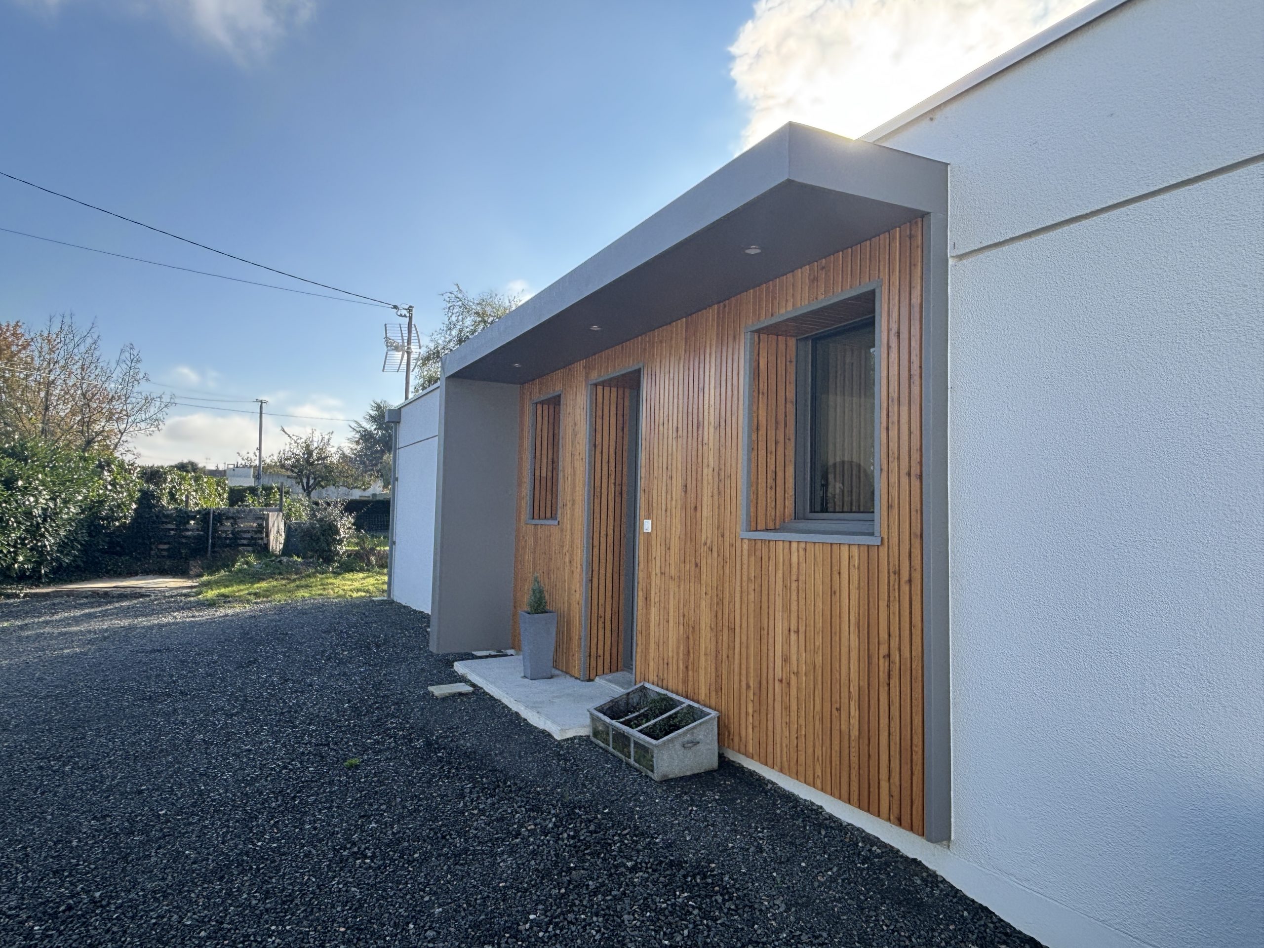 L’intervention a porté sur une modernisation globale des façades, avec des lignes épurées et des volumes affirmés. Les enduits clairs viennent structurer l’ensemble, tandis que l’intégration d’un bardage bois vertical marque l’entrée et apporte chaleur et élégance à l’architecture. Ce contraste subtil entre minéral et bois crée une façade contemporaine, lisible et intemporelle.